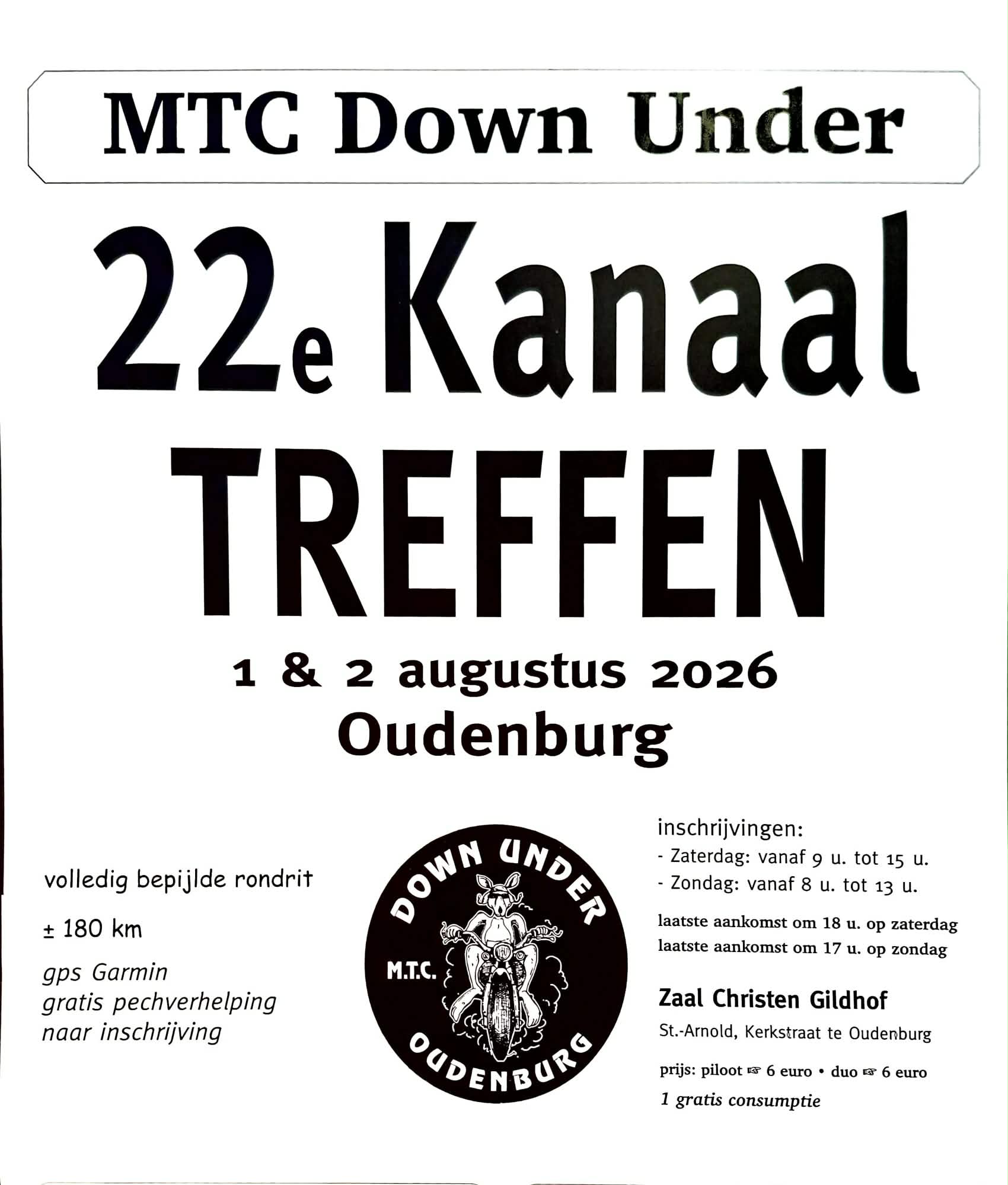 « All Events 22e kanaal Treffen August 1 @ 00:00 - August 2 @ 23:59 « 38ste Internationale Rally – Editie 2026 – Harley-Davidson Club Free Wheeling Kempen Competentie Motortreffen 2026 in VOT Ieper » Location: Europe - Belgium - Oudenburg Add to calendar Google Calendar iCalendar Outlook 365 Outlook Live Details Start: August 1 @ 00:00 End: August 2 @ 23:59 Event Category: Ride outs - Road Organiser MTC Down Under Related Events 21ste betonstuivers treffen April 18 @ 08:00 - April 19 @ 18:00 Drie ridders All Seasons Rally April 18 @ 09:00 Rassemblement des Zébus April 19