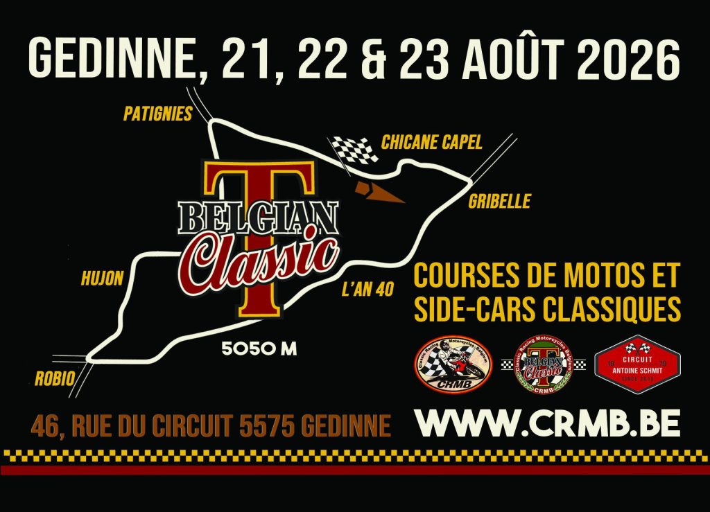 « All Events 4EVO YOUNG TROPHY and Endurance classic June 13 - June 14 « Motor Tour Days 2e editin TRACKDAYS․be at Mirecourt – 13 & 14 June 2026 » Location: Europe - Belgium - Chimay Add to calendar Google Calendar iCalendar Outlook 365 Outlook Live Details Start: June 13 End: June 14 Event Category: Competitions - Classic Bike Related Events 4 heures Liège Classics May 23 - May 23 Trophée des Motos Classiques July 18 - July 19 Belgian Classic Trophy August 21 - August 23
