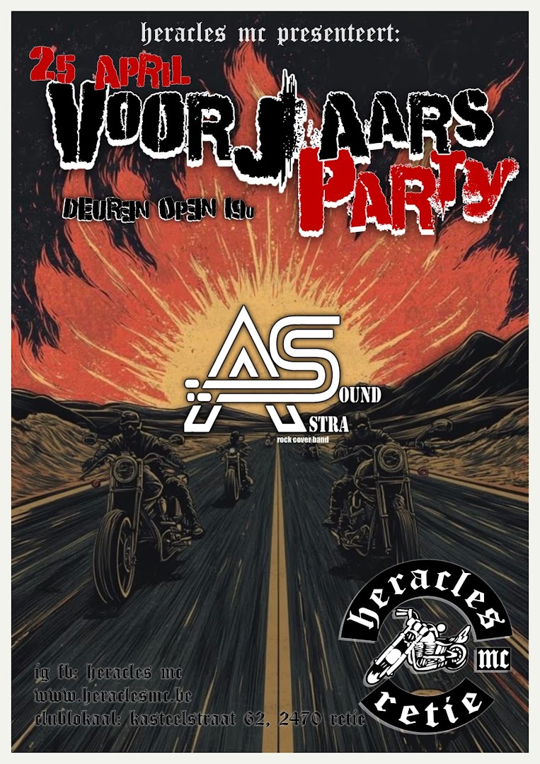 « All Events This event has passed. Voorjaarsparty April 25 @ 00:00 « Start Of Season Opendeurdagen Spring Open House @ American Lifestyle » Location: Europe - Belgium Add to calendar Google Calendar iCalendar Outlook 365 Outlook Live Details Date: April 25 Time: 00:00 Event Category: Parties Festivals and others Organiser Heracles MC Related Events DARE – Dutch Adventure Ride Experience 2026 x CFMOTO April 25 @ 09:00 - April 26 @ 17:00 Rock night Free Riders MC April 25 @ 19:00 - 23:30 Ghent Motor Event 2026 April 26 @ 08:00 - 17:00