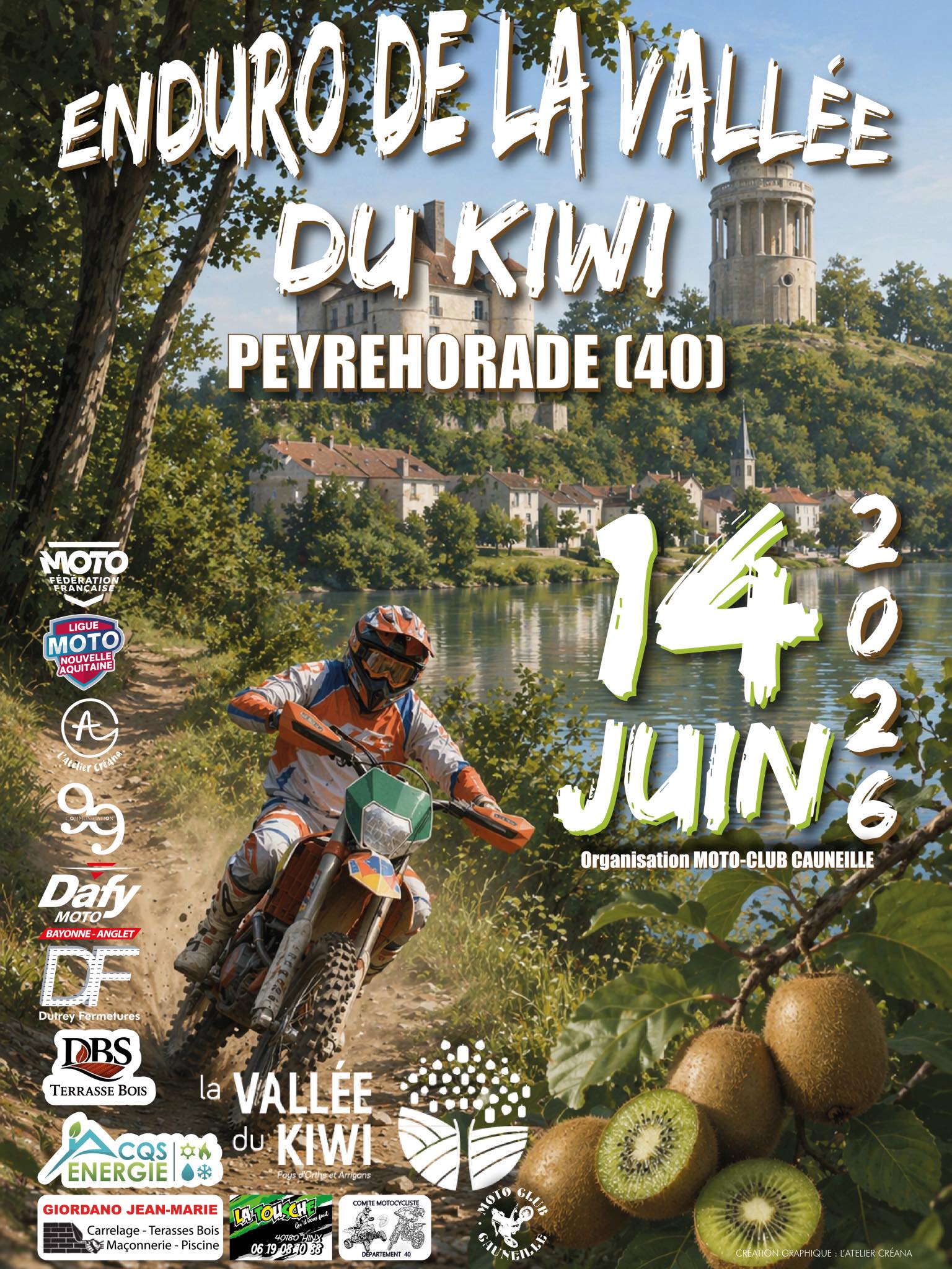 meldingen Nous vous donnons rendez-vous le 14 juin 2026 pour notre enduro de la vallée du kiwi à PEYREHORADE (40) ! Les inscriptions sont ouvertes ! https://ffm.engage-sports.com/enduro-peyrehorade-40-2026/ Nous vous attendons nombreux ! N’hésitez pas à partager ! À très vite !