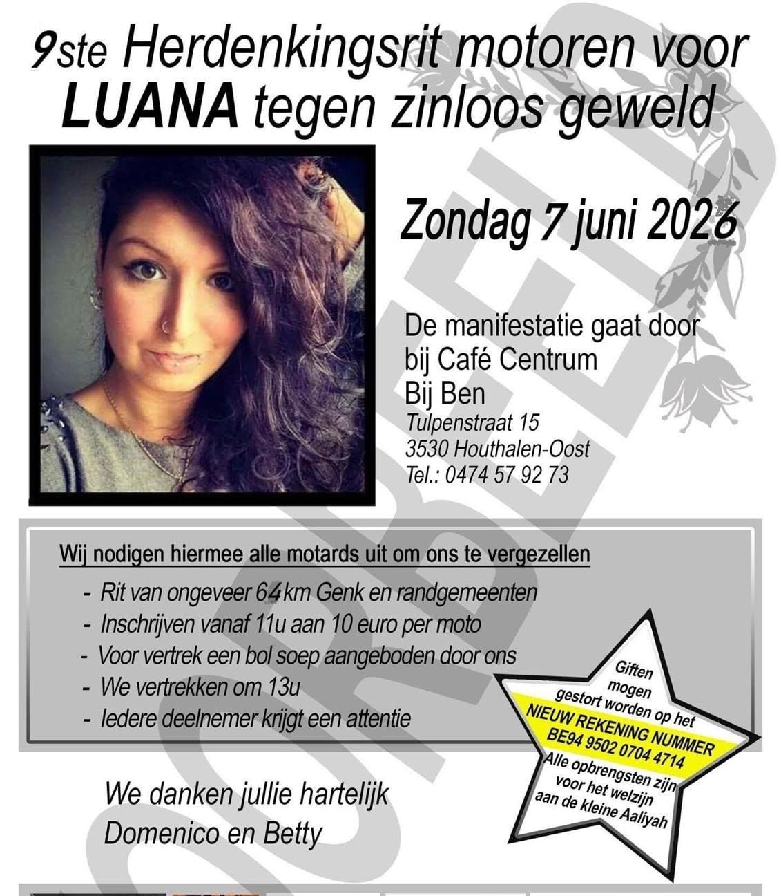 9ste Herdenkingsrit motoren voor Luana tegen zinloos geweld