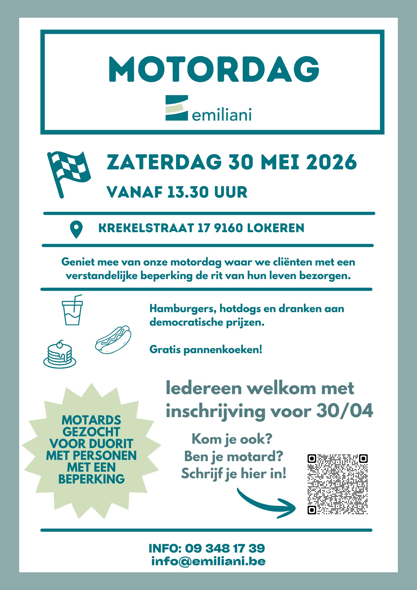 Beste lezer / biker Graag nodigen we je van harte uit voor de Motordag van Emiliani, die door op zaterdag 30 mei 2026 vanaf 13.30 uur in Lokeren Tijdens deze bijzondere namiddag bezorgen we onze cliënten met een beperking letterlijk en figuurlijk de rit van hun leven, samen met geëngageerde motards. Iedereen is welkom om […]